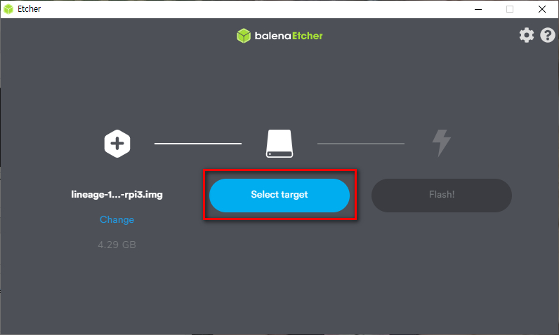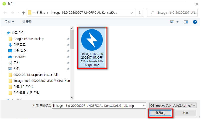 Select image를 선택하고, 다운로드 받은 LineageOS 이미지 파일을 선택합니다.