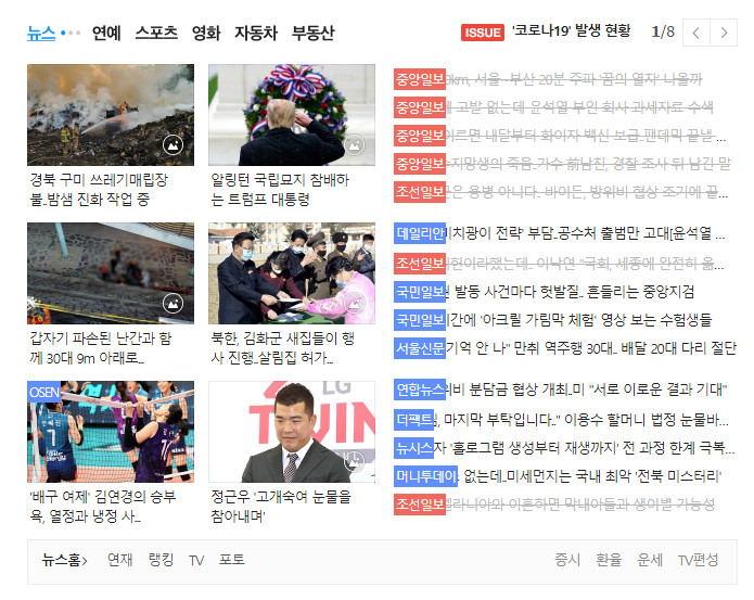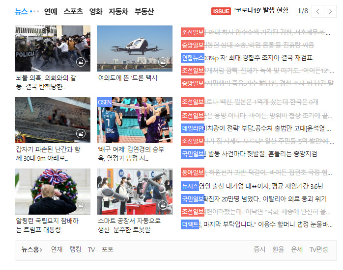 이건 오늘자 뉴스 목록인데.. 보세요.. 완전... 온통 조중동 목록이네요..