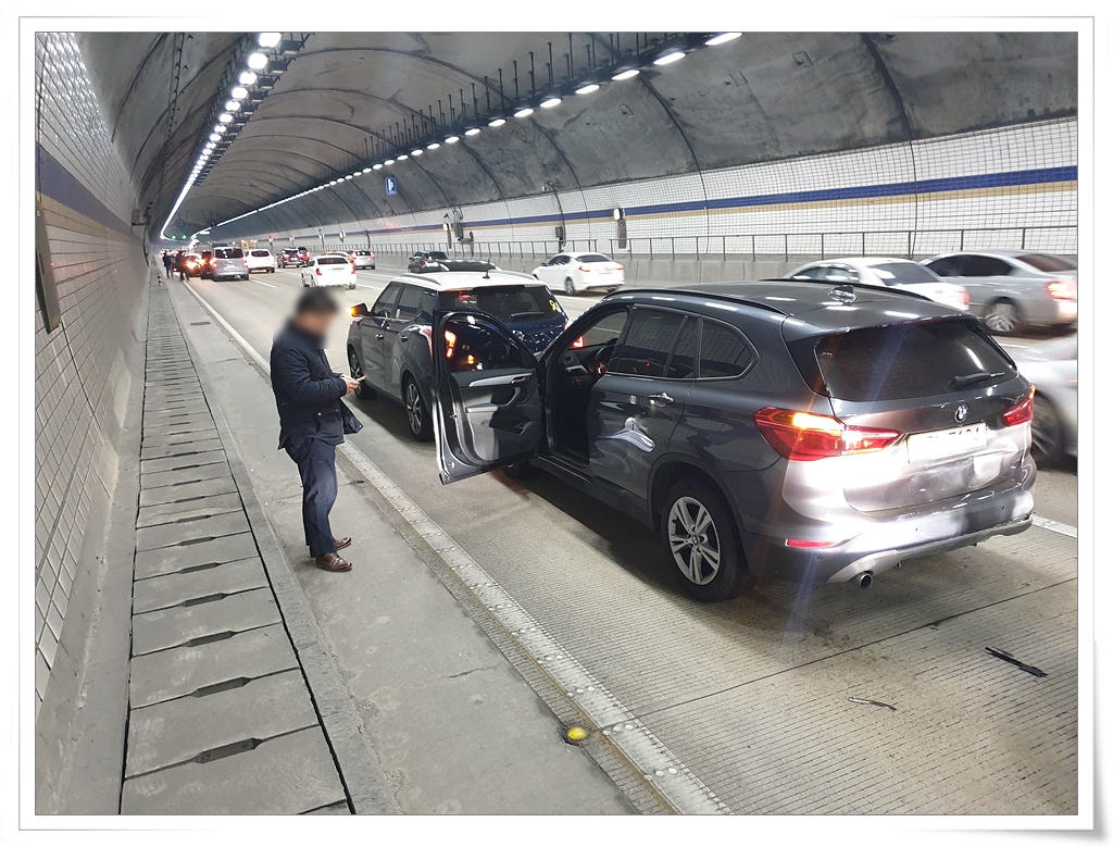 으이구.. 송추에서 의정부 방향으로 첫번째 터널에서 1차로 추돌당함... 3중 추돌이었는데.. 맨 앞에 있어서