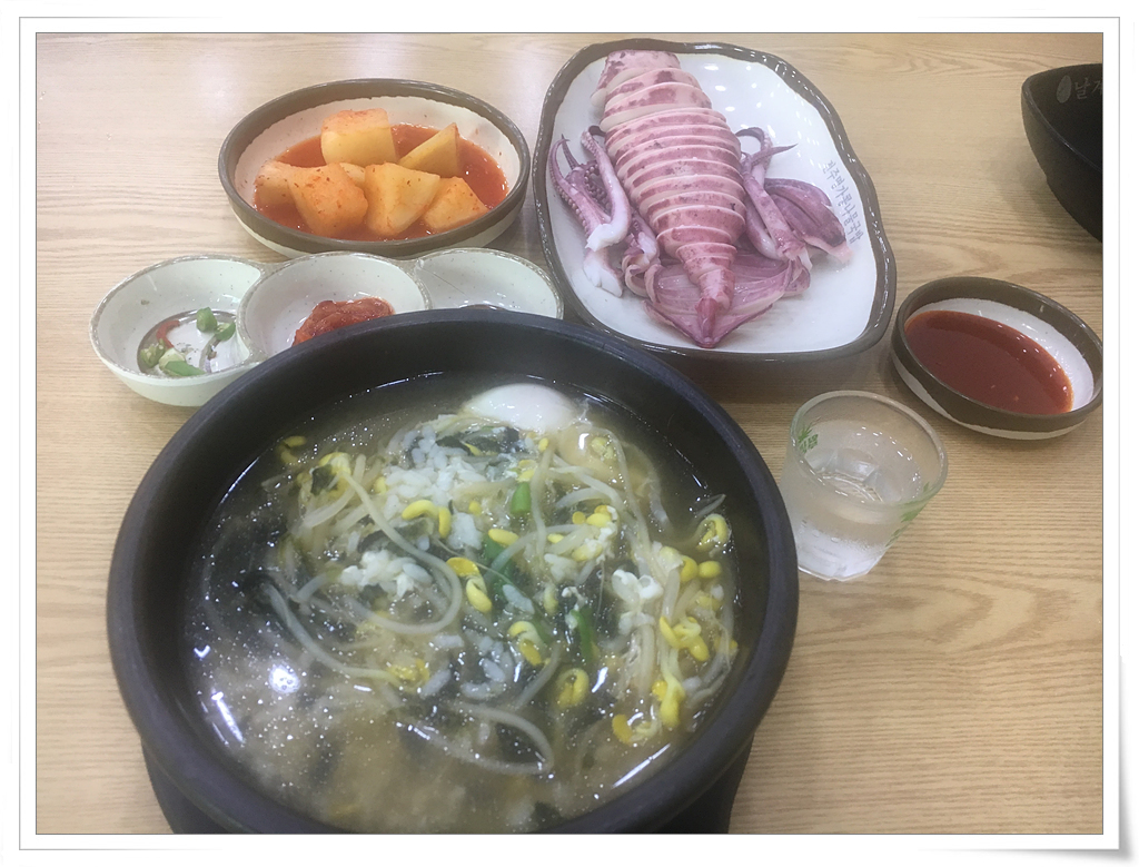 목포 출장 중 콩나물국밥과 오징어에 소주 한잔~